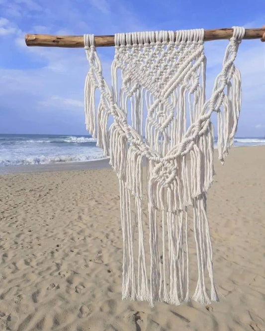 Workshops não eram uma possibilidade e também não queriamos ensinar pela metade. Decidimos assim criar o mais completo, o mais essencial, o mais pormenorizado kit de iniciação ao macramé , onde explicariamos tudo do inicio ao fim, desde o material até à finalização da peça! Demoramos uns meses a desenhar e a criar todo o projeto em si, mas quando saiu foi um sucesso e a gratidão que vinha do lado dos nossos clientes, encheu-nos o coração até ao dia de hoje.