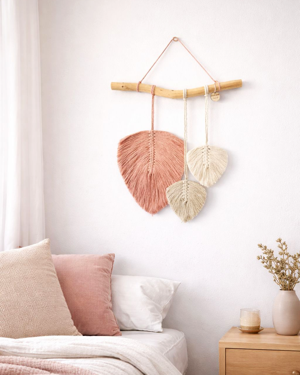 Fio 100% algodão, tronco de madeira natural envernizado sem quimicos