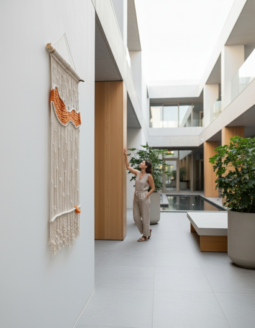 Painel Decorativo de Parede, feito à mão em Portugal, com técnicas de macramé.