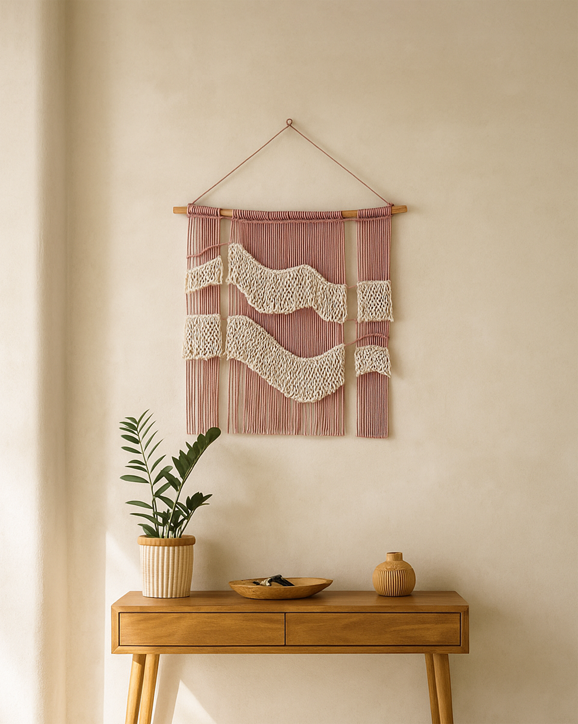 Painel Decorativo de Parede, feito à mão em Portugal, utilizando diferentes técnicas macramé.