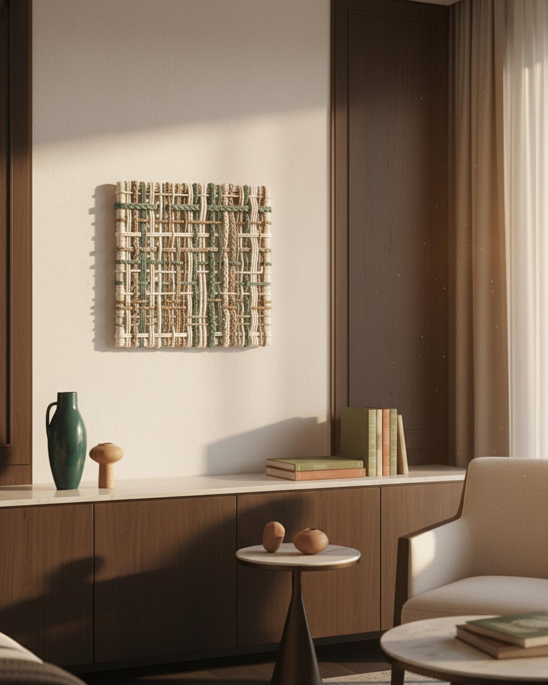 Quadro feito à mão, que combina as cores da natureza para trazer serenidade a um espaço.